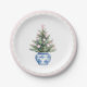 Dieses Weihnachtsdesign hat ein prächtiges, großtausendjähriges Design mit einem Weihnachtsbaum in einem blau-weißen Chinoiserie Topf auf einem rot-rosa Hintergrund mit einer geschmolzenen Grenze um den Rand.
