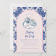Diese Party Einladung ist ein prächtiges, altes, altmodisches Design mit einer Teekanne mit blauen und rosa, holzigen Motiven und einem rosa Bogen mit einem blau-rot-rosa Gewölberand. Vorder und Rückseite haben ein sich koordinierendes Damast-Muster.