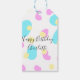 Pink blue yellowhappy birthday kids shapes abstrac geschenkanhänger
