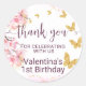 Pink Blume Gold Schmetterlinge Script Danke Runder Aufkleber