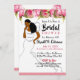 Diese elegante rosafarbene Blumendusche lädt zu einer afroamerikanischen Braut ein, die ein zeitgenössisches angepasstes Kleid trägt. Versenden Sie eine niedliche und stilvolle Einladung.