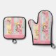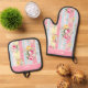 Pink-Blütenstreifen Ofenhandschuh & Topflappen-Set