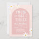 Pink Boho Arch Daisy Young Wild und Three Birthday Einladung