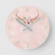 Pink Boho Chic Antlers & Feathers Rustikales Glam Runde Wanduhr