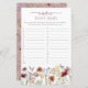 Pink Boho nennt dieses Baby-Spiel. Fordern Sie Ihre Gäste mit diesem Namen That Baby Game an, eine lustige und einnehmende Aktivität für Ihre Babydusche. Die Vorderseite ist mit einem eleganten, rosafarbenen Rose-Drehbuch versehen, das die Spieler dazu bringt, Babynamen mit ihren Eltern abzustimmen oder klassische Rhythmen des Kinderzimmers zu vervollständigen. Die Rückseite ist mit einem koordinierenden Muster aus Boho-Schmetterlingen, Vintagen Wildblumen, getrockneten Gräsern und sanftem, grünem Blattwerk auf einem rosa, staubigen Hintergrund aus der Rose geschmückt, wodurch ein gepflegtes und stilvolles Aussehen gewährleistet wird. Die warmen Erdtöne Bräune, Braun, Rost, Terrakotta, Bronze Orange und Mutation Salbei Green machen dieses Spiel perfekt für jede Frühjahr-, Sommer-, Herbst- oder Winterdusche. Ob Trivialspieler oder einfach nur zum Spaß, dieses wunderschön gestaltete Spiel bringt Ihnen sicherlich Freude und freundlichen Wettbewerb.