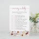 Pink Boho Wildblume Baby Shower Game. Lass deinen Gästen, ihre Intuition mit diesem Mommy oder Daddy Game zu testen, eine unterhaltsame und interaktive Art, die Eltern zu feiern. Das rosa, staubige Drehbuch der Rose auf der Vorderseite stellt spielerische Fragen, um zu erraten, wer nach der Ankunft des Babys eher das tun wird. Der Rücken weist ein koordinierendes Muster aus Boho-Schmetterlingen, Vintagen Wildblumen, getrockneten Gräsern und weichem Weizengrün auf einem rosa, staubigen Hintergrund der Rose auf, wodurch ein stilvolles und poliertes Aussehen gewährleistet wird. Die warmen, erdigen Bräunungen, Braun, Rost, Terrakotta, Bronze-Orange und das gedämpfte Salbei-Grün machen dieses Spiel zu einem perfekten Spiel für jede Frühjahr-, Sommer-, Herbst- oder Winterdusche. Mit einem Spiel, das so unvergesslich ist wie der Tag selbst, können Sie Ihr Event mit Lachen und leichtem Spaß erleben!