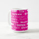Fun rosa und weiße gemusterte Tasse gedruckt mit den Namen der verschiedenen Buchgenres. Ideal für Buchwürmer, Schriftsteller, Autoren und Bibliothekare gleichermaßen.