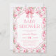Rosa Bow Baby Dusche Einladung. Schöne, weiche, feminine Rose mit Coquette rosa Bogen-Design. Schöne Babydusche für die zukünftige Mutter. Vintage und gürtelmädchenhafte Villen, die sich perfekt für eine Babydusche eignen.