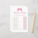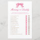Pink Bow Baby Shower Mommy oder Daddy Game Cards