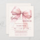 A soft beige, cream background, decorated with a large pink bow. For celebrating a baby girl. Personalize and add a name and party details.