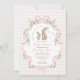 Pink Bow Bunny Gingham Floral Girl Baby Shower Einladung