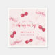 Add sweetness to your baby shower table with these napkins featuring glossy watercolor cherries and a chic pink bow. Perfect for a coquette and elegant baby shower.