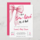 Welcome your bundle of joy in style with this pink bow baby shower invitation for baby girls. It's a fun and cute way to celebrate your daughter's big debut. Personalize it with your event details for a party that will be truly un-bow-lievable.