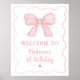 Herzlich willkommen bei Ihren Geburtstagsgästen mit einem personalisierten Willkommensschild. Zeichnen Sie das Schild auf einen Tisch in der Nähe des Eingangs, oder befestigen Sie das Poster auf Schaum und zeigen Sie es draußen auf einem Aal an. Das Design ist mit einem handgemalten, rosa Wasserfarbenbogen mit einem Schnurrbart versehen.