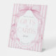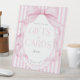 This pink bow baby shower coquette striped baby shower gift table pedestal sign design features soft pink stripes, a large bow and ribbons, and delicate frame details. Perfect for a feminine celebration, it creates a charming, preppy, and elegant look that feels sweet, stylish, and timeless. Created by Simply Farmhouse Press.