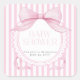 Pink Bow Girl Coquette Striped Baby Shower Quadratischer Aufkleber