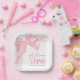 This cute square paper plate design features a playful watercolor bow in the top left corner, adding a sweet and stylish touch to your celebration. The phrase “Girls Just Wanna Be ONE” appears in the center in a mix of fun script and classic serif fonts, creating a cheerful, girly vibe that perfectly suits your little one’s first birthday. Ideal for serving cake, snacks, or party treats, this plate adds charm to any table setup. All text, fonts, and colors can be customized to match your theme and decor.