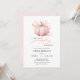 Diese elegante und charmante Babydusche lädt mit einer wunderschönen Aquarellbilderin eines rosa Kürbis mit einem zarten Band zum Feiern der bevorstehenden Ankunft eines Kleinen in der Herbstsaison ein.