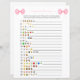 Dieses Baby-Dusche-Emoji-Spiel ist perfekt für eine Babydusche oder ein Babysprinkle. Dieses Spiel hat einen rosa Wasserfarbe Bogen auf der Vorder- und Rückseite. Ihre Gäste können die Namen der Kinderbücher und Kinderzimmer-Rhythmen lösen, indem sie die Emoticons dekodieren. ANTWORTSCHLÜSSEL: 1. Fünf kleine Affen springen auf dem Bett 2. Twinkle Twinkle Little Star 3. Seine Bitsy Spider 4. Regenbogenfisch 5. Die sehr hungrige Raupe 6. Der Löwe, die Hexe und der Wardrobe 7. Hickory Dickory Dock 8. Ich spioniere 9. Grüne Eier und Schinken 10. Gewinnen Sie den Pooh 11. Charlottes Web 12. Alice im Wunderland 13. Wenn Sie einer Maus ein Cookie 14. Hey Diddle Diddle 15. Es gab eine alte Frau 16. Ein Fisch, zwei Fische, roter Fisch, Blauer Fisch 17. Wo die wilden Dinge 18 sind. Goldilocks und die drei Bären 19. Die drei kleinen Schweine 20. Der alte MacDonald hatte einen Bauernhof. Sie können dieses Design personalisieren, indem Sie auf "Diese Vorlage personalisieren" klicken oder wenn Sie den Schriftart ändern, die Farben ändern oder die Designelemente anders anordnen möchten, klicken Sie auf "Bearbeiten mit dem Entwurfswerkzeug".
