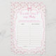Treten Sie ein in eine Welt des zeitlosen Charmes und zarter Schönheit mit unserem "Pink Bow Liebe Shack Girl Baby Shower Bingo Game", in dem jedes Detail Geschichten von Liebe und Nostalgie weckt. Dieses bezaubernde Design erinnert an die Essenz Vintager Eleganz, mit zarten rosa Bögen und aufwändigen Blumenmustern der Rose. Jedes Element, um die Gäste in eine vergangene Ära der Romantik und Eleganz zu bringen, schafft ein Gefühl der Wärme und Nostalgie, das tief in den Familien ankommt, die die Ankunft ihrer kleinen Prinzessin erwarten. Vor dem Hintergrund von sanften Pastelltönen und Akzenten im Shabby Chic strahlt das Stück zeitlose Eleganz aus und schafft so die perfekte Atmosphäre für eine Babydusche, die voller Freude und Zauber ist. Matching-Elemente verfügbar.