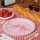 Pink Bow Paper Plate With Plain Pink Backround Pappteller