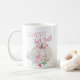 Pink Bow Pumpkin Happy Fall Y'all Coffee Tasse mit weißem Kürbis, rosa Bogen und pastellfarbenen blumigen Blätter.