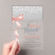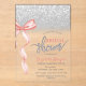 Niedliche Babydusche mit rosa Bogen auf einem silbernen Glitzer-Hintergrund. Diese Brautduscheinladungen sind einfach auf Ihre Veranstaltung zugeschnitten, indem Sie einfach Ihre Details hinzufügen.