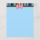 Niedliche Schreibtischseiten für Mädchen mit blauem Hintergrund mit braunen und blauen senkrechten Streifen über einem niedlichen rosa Bogen. Mit diesen hübschen Schreibwaren-Seiten werden die Mädchen Liebe haben, ihren Freunden und ihrer Familie besondere Nachrichten zu schicken.