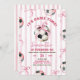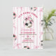 Pink Bow Stripes Girl Fußballspiel Geburtstag Einladung