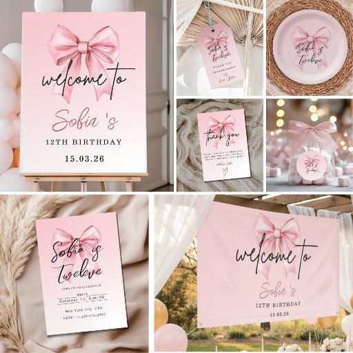 Add a touch of elegance to your celebration with this pink bow twelve birthday paper napkin. Featuring a soft watercolor bow and customizable name and age, this design is perfect for girly, pastel-themed, or tween birthday parties. Ideal for 12th birthday décor, dessert tables, party setups, and stylish birthday photos. Personalize easily on Zazzle to create a unique and charming party detail that guests will love.