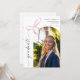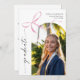 Genießen Sie Ihre akademische Leistung mit unserem Pink Bow Abschluss Invitation, das Eleganz und modernen Stil verbindet und das Wesen Ihres besonderen Tages perfekt abbildet. Der zarte, weiche, rosa Wasserfarbenbogen schmückt beiderseits der Einladung und verleiht dem Abschluss eine Touch von Eleganz und Charme. Mit einer bogenförmigen Fotovorlage auf der Vorderseite können Sie ein hochgehaltenes Bild hinzufügen, das Ihre Reise widerspiegelt und die Einladung in einen unvergesslichen Sake verwandeln. Das Wort "Graduate" wird in einem modernen, vertikalen Skript-Schriftart vorn schön präsentiert, während "grad Party" den Rücken schimmert und eine zeitgenössische und stilvolle Ästhetik bietet. Das elegante Design der Einladung eignet sich für jede Feier zum Abschluss, sei es eine feierliche Zeremonie oder eine lässige Ansammlung mit Freunden und Familie. Laden Sie Ihre Lieben ein, sich an der Feier dieses wichtigen Meilensteins mit unserer Pink Bow Abschluss Einladung zu beteiligen. Es ist mehr als nur eine Einladung; es ist ein schöner Ausdruck Ihres Erfolgs und des aufregenden neuen Kapitels, das erwartet wird.