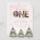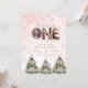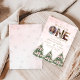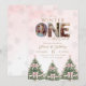 Celebrate your little one’s milestone with this pink Winter ONEderland 1st Birthday Invitation featuring snowflakes, festive Christmas trees with pink bows, and three photo spots inside the word “ONE.” Easily personalize all text and photos for a magical winter birthday celebration.