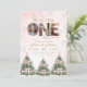 Pink Bow Winter Onederland Girl 1st Birthday Photo Einladung