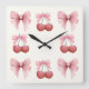 Pink Bows and Cherries Girly Coquette Quadratische Wanduhr