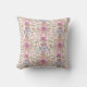 Boho und rustikales Kissen mit handgezeichneter Abbildung von Bögen und Blume in rosa und lila Farben.
