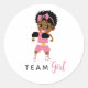 This playful sticker features an African-American baby girl in pink boxing gear with a pacifier, standing in a fun boxing pose next to the cute "Team Girl" text. A perfect choice for gender reveal parties that celebrate team spirit and friendly competition. Adds a fun and unique touch to party favors, envelopes, or gift bags.