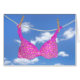 Helles, floralfarbenes Rosa BH, das an einer Wäscheleine für Freunde hängt