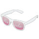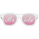 Stilvolle Sonnenbrille für die Braut, um Bride in einem hübschen weißen Skript-Schriftart mit rosa Omelfarben Hintergrund.