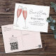 Dieses Design umfasst einen Aquarellbrunch und eine Bubbly Bride, ein Brautparty-Wein-Champagnergetränke, ein QR-Code Social Media Facebook, eine Website-URL-Scannable online, ein rosa minimalistisches Design, einen trendigen Kalligraphie-Script-Schriftart, eine Champagner Flöte-Glas-Toast-Bar, einen whimsical Typografie-Textstil, damit ihre Braut sein wird, eine preisfreundliche Postkarte, eine Brautparty-Karte