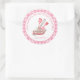 Wie kann man ein hausgemachtes Geschenk besser personalisieren als mit diesen niedlichen lustigen Aufklebern mit einem rosa und weißen Büffel-Karo-Hintergrund mit einer Komposition aus rosa Küchenutensilien, rosa Rosen und einem Kuchenteller. Personalisieren Sie mit Ihren eigenen Informationen.