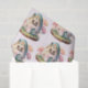 Gewebepapier mit einem bezaubernden Bild mit einem runden, stehenden Hasen draußen ist es eiförmig. Pastellfarben und Kirschbäume verleihen ihm eine japanische Kawaii-Atmosphäre.