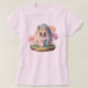 T - Shirt mit einem bezaubernden Bild mit einem runden, stehenden Hasen, das draußen ist eiförmig. Pastellfarben und Kirschbäume verleihen ihm eine japanische Kawaii-Atmosphäre.