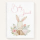 Süßes Hasen in einem Korb, umgeben von pastellfarbenen Blume Baby Journal, um die Spur aller Schwangerschaftsnoten und Baby Meilensteine behalten. Einfach zu bewundern.