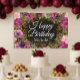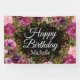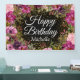 Elegantes und romantisches Rosa, Bordeaux und lila Wasserfarbe Vintage Blüten und Blätter auf dem schwarzen Party-Banner "Happy Geburtstag" mit funkelnd goldenen Glitzer. Personalisiert mit dem Namen des Ehrengast. Kontaktieren Sie mich, um Hilfe bei Ihren Anpassungen zu erhalten oder um zusätzliche Matching oder Koordination von Zazzle-Produkten für Ihr Party anzufordern.