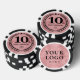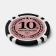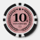 Poker chips for employees or clients to celebrate the 10th anniversary of your business. Commemorative design personalized with your company logo and the year on the front, with a faux pink glitter background, a laurel branch, and stars. On the back, it has space to add a bigger logo or an image, and it can be changed to text by clicking the button to edit the design.
