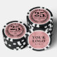 Poker chips for employees or clients to celebrate the 25th anniversary of your business. Commemorative design personalized with your company logo and the year on the front, with a faux pink glitter background, a laurel branch, and stars. On the back, it has space to add a bigger logo or an image, and it can be changed to text by clicking the button to edit the design.