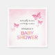 Diese Papierservietten mit rosa Schmetterlingsmotiven eignen sich perfekt für eine Babydusche, die ein kleines Mädchen ehrt. Das Design enthält den Text "Schmetterlingsküsse und Babywünsche" und ist mit rosa Schmetterlingen in Aquarellfarben und mehrfarbigem Text akzentuiert. Personalisieren Sie Ihre persönlichen Daten mit dem Namen der künftigen Mutter.