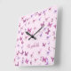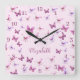Pink Butterflies Pattern Custom Name Quadratische Wanduhr