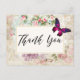 Pink Butterfly und Shabby Vintage Rose Danke Postkarte