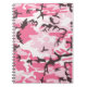 Notebook mit rosa Camouflage. Besteht aus 4 Farben, die in einem ineinander greifenden Muster gedruckt werden.